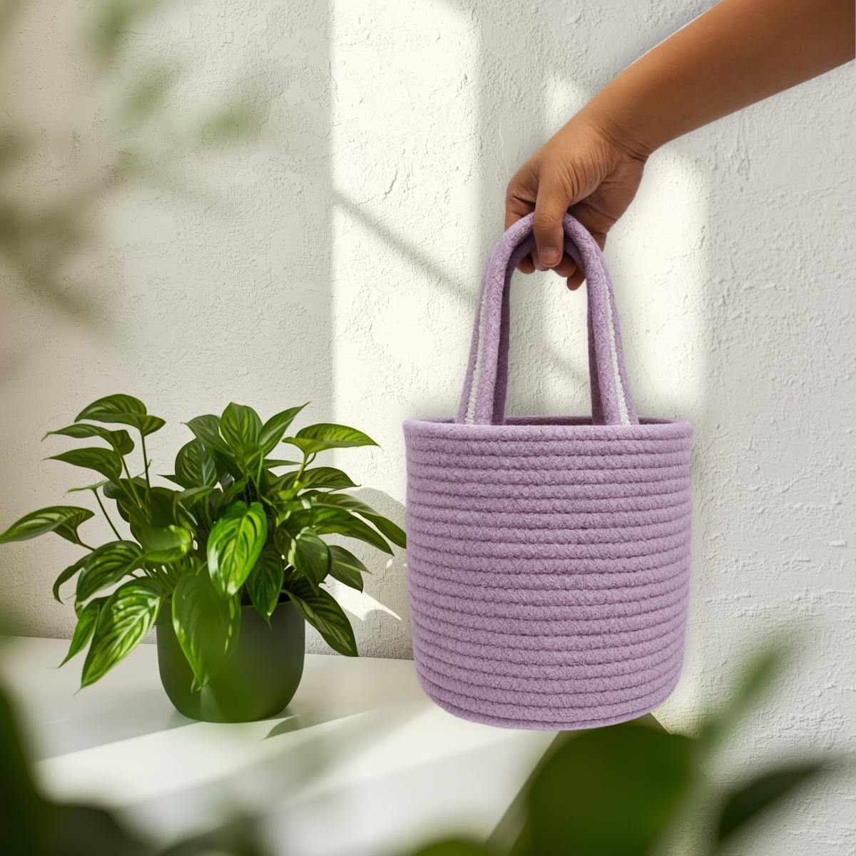 Delicate, soothing, and full of charm — Bhuvastra’s Round Lavender Boho Basket is where craftsmanship meets calm beauty.